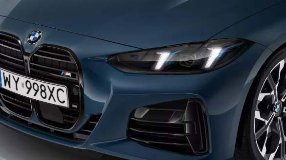Modele BMW M serii 4 Cabrio reinterpretują charakterystyczną dla BMW "czterooczną" twarz, wprowadzając nowy wymiar projektowania. Pionowe elementy świetlne w adaptacyjnych reflektorach diodowych tworzą wyraziste akcenty wizualne, podkreślając unikalny charakter pojazdu. Zaawansowana technologia matrycowa gwarantuje doskonałą widoczność w każdych warunkach oświetleniowych, zapewniając bezpieczeństwo i komfort jazdy o każdej porze dnia i nocy.