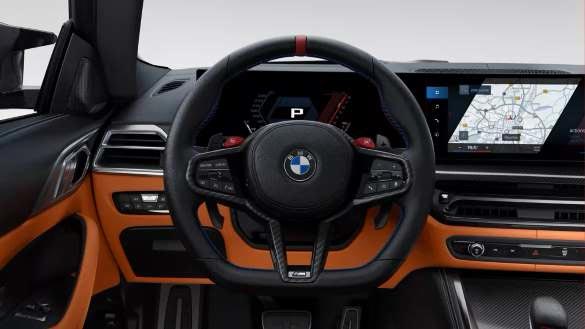 Lekkie karbonowe fotele kubełkowe M są zaprojektowane tak, aby kierowca i pasażer mogli bezpośrednio doświadczać sportowego potencjału BMW M. Podświetlane znaczki modelu dodają ekskluzywnego akcentu, a powierzchnie z widocznym wzorem włókien węglowych podkreślają zaawansowaną technologię i nadają fotelom wyrafinowany, wysokiej jakości wygląd, który podkreśla sportowy charakter pojazdu.